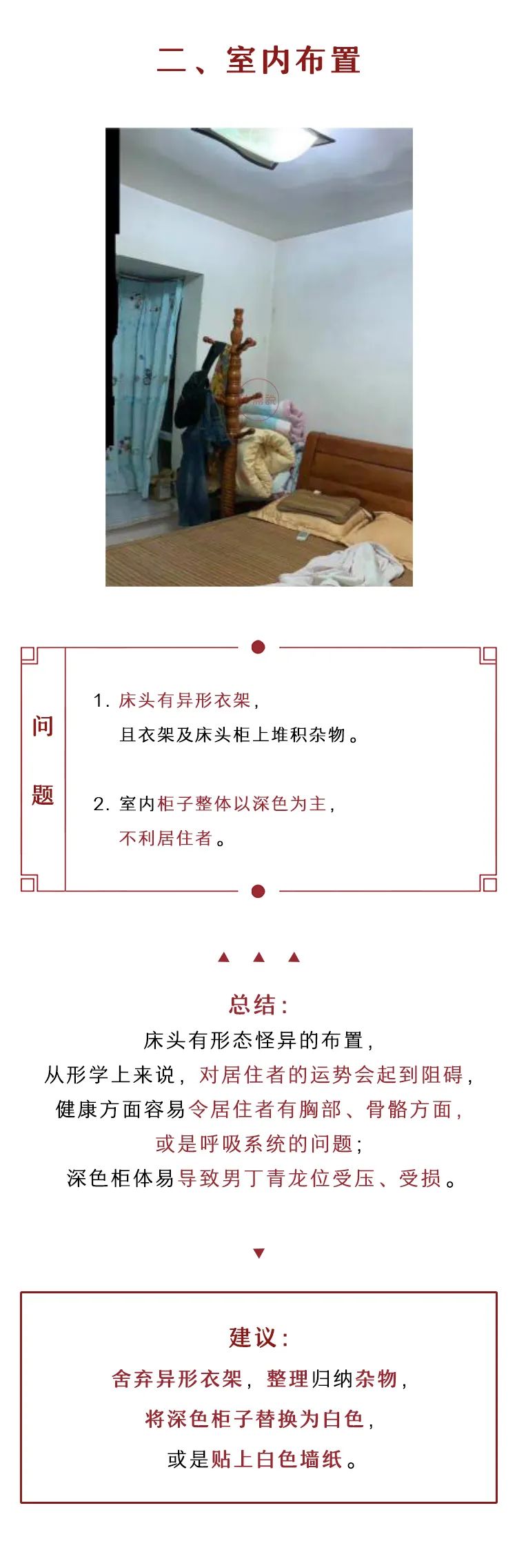 本期真人看风水案例中的卧室问题最重要的是两点:杂乱和逼