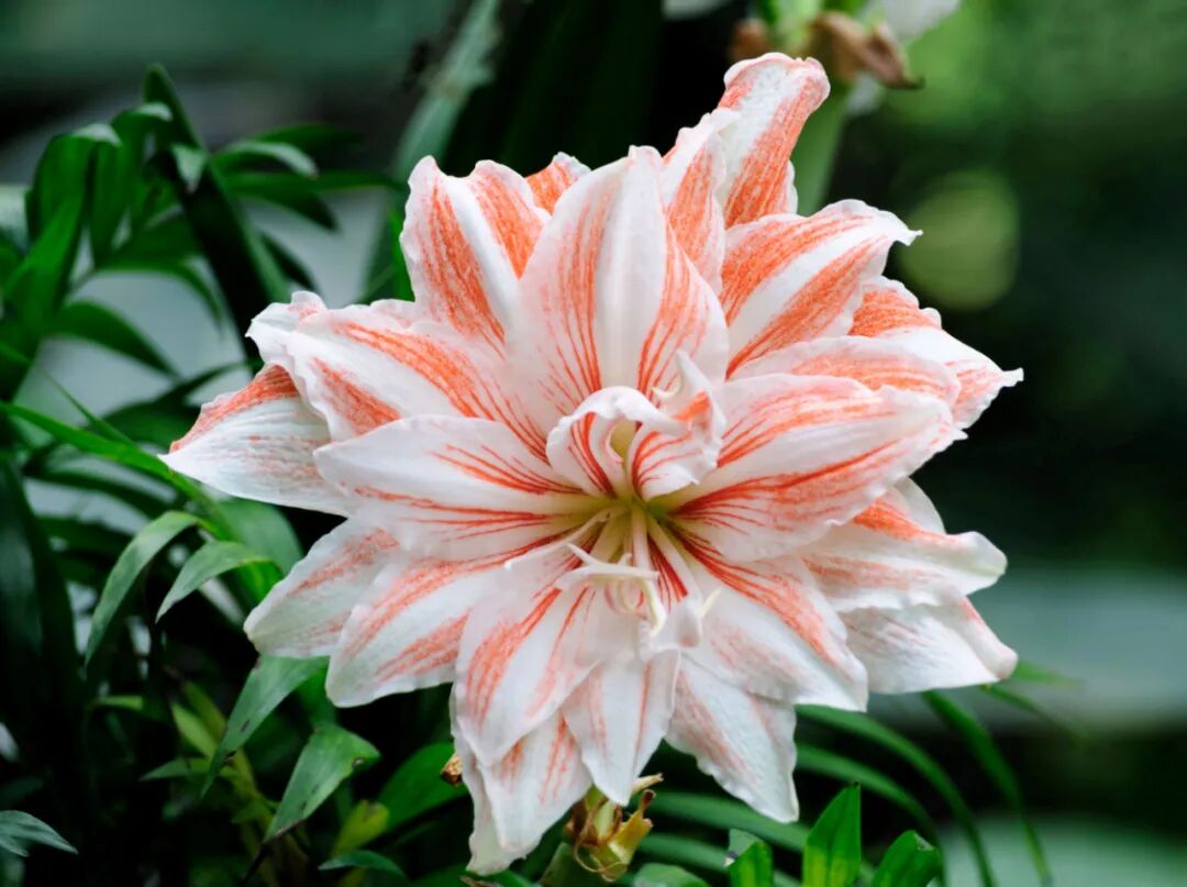 朱顶红特别耐旱,但它怕冻,如果家里温度高于10度,浇水的时候,沿着盆沿浇即可,不要浇到种球上,尤其是叶芯里;