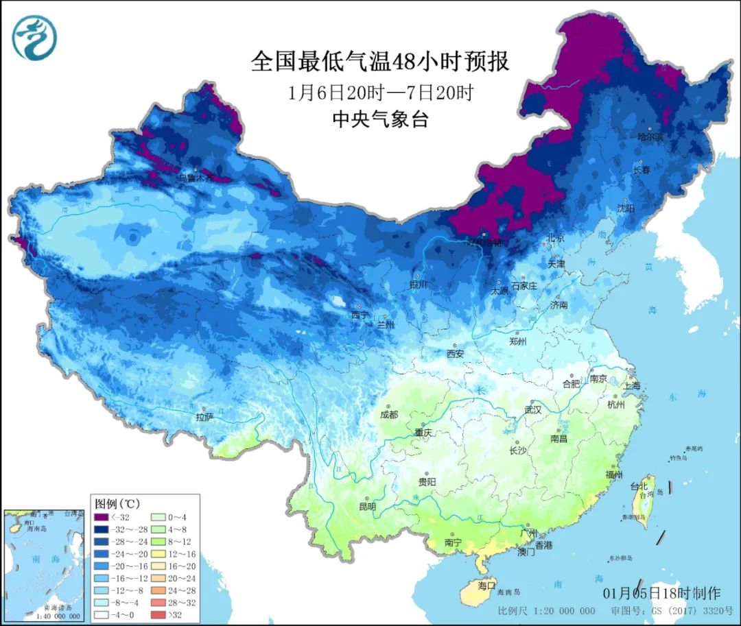 这次降温幅度总体不及12月底的“跨年”寒潮过程,但由于是在较低的基础气温上继续降温,这次降温后的气温低点要低于“跨年”寒潮过程,所以是冷上加冷。