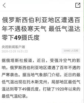 此外,由于暖脊存在,把原本在极区聚集的核心的冷空气挤到了东西伯利亚区域,导致影响我国的冷空气频繁南下。近日俄罗斯西伯利亚地区遭遇罕见极寒天气,足可见最近西伯利亚囤积的冷空气“制冷”有多强。