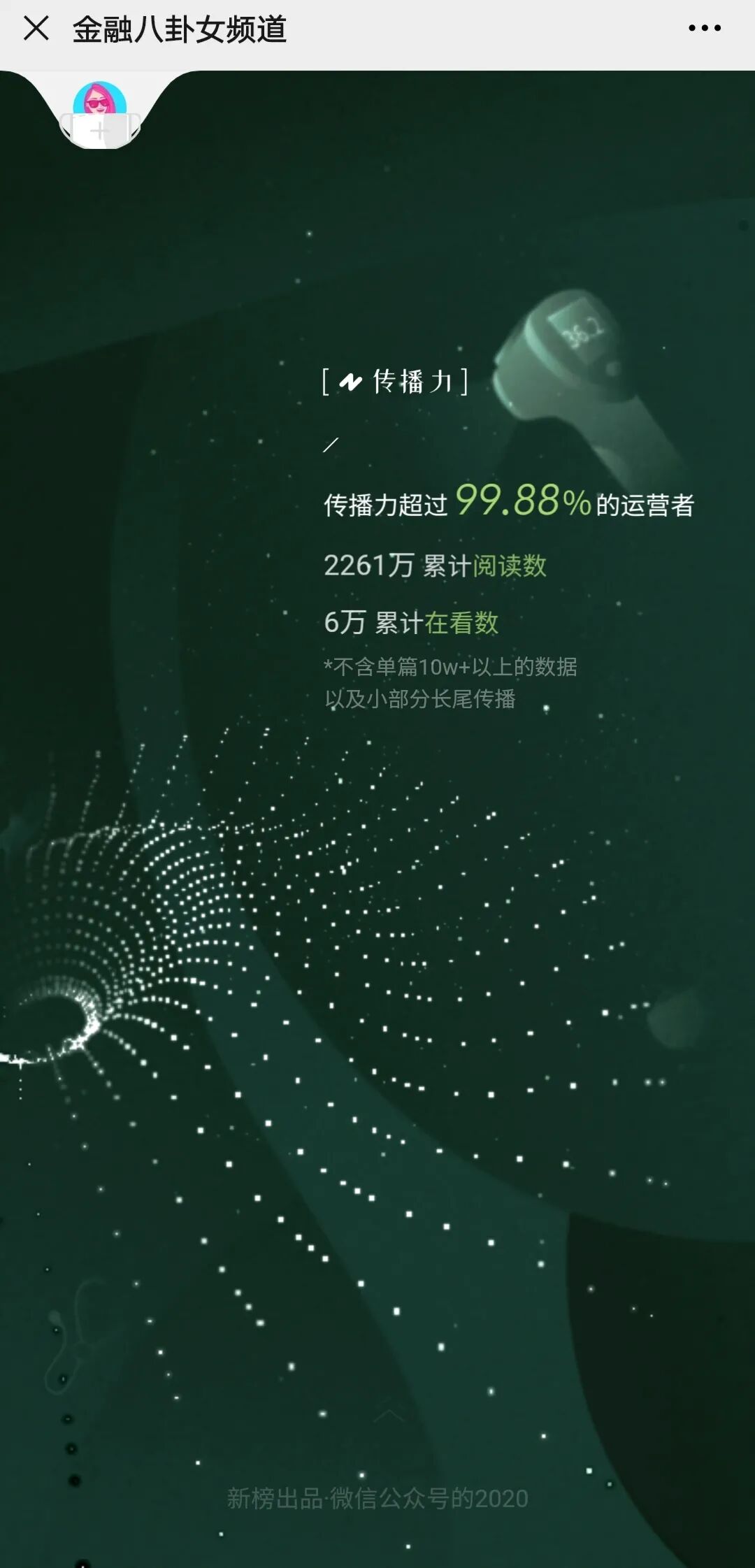 我们都已经历不平凡的2020,虽然艰难,但仍有特别的成就。新榜的数据更新啦,一起来看看金融八卦女频道的2020吧。