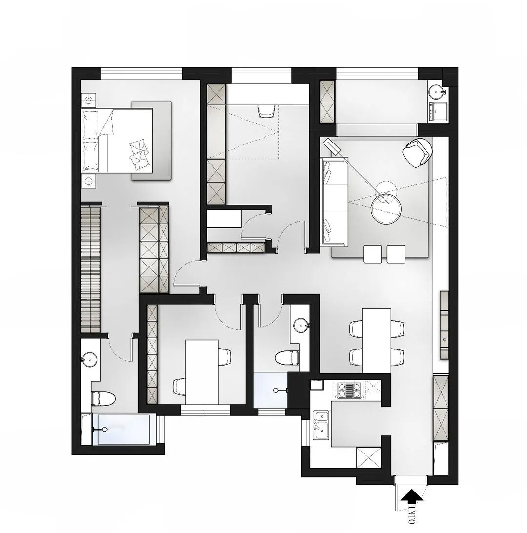 传统格式统一的精装修,虽然品质并不差,但是也不好看.于是业主就通过朋友介绍找到了我们。