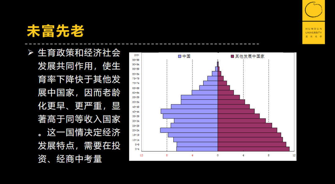 所以,经济社会发展加上我们独特的政策,就使得我们的生育率下降更快一些,从而形成未富先老的特征。
