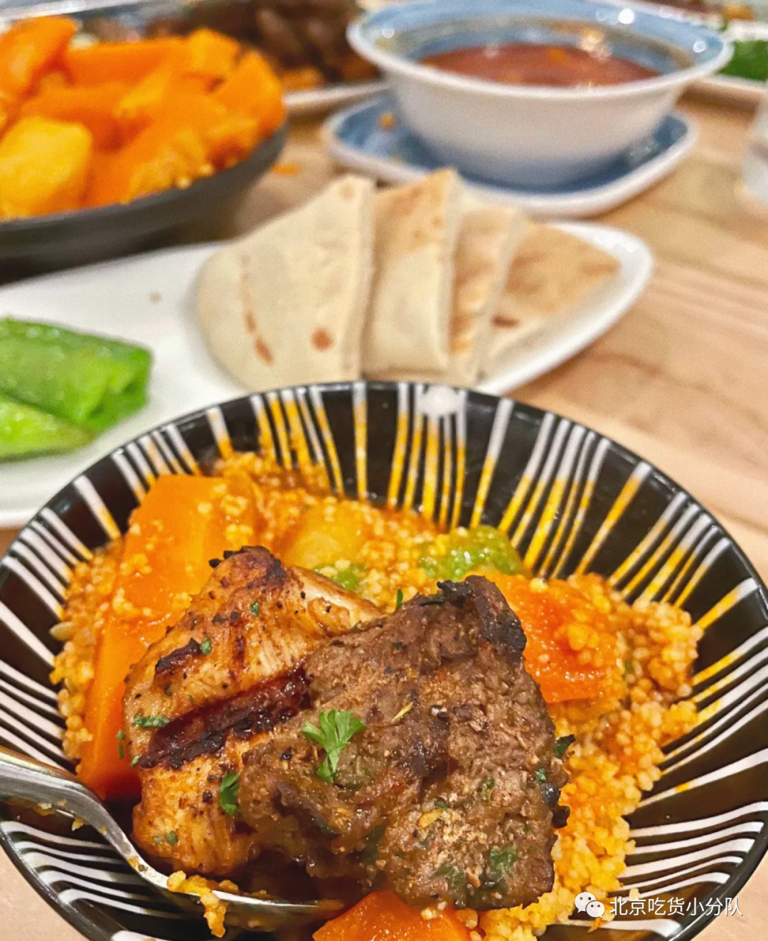 【库斯库斯】可是个隐藏菜单,要跟服务员说才会有。是由主食菜饭+汤+烤肉组成的,来吃饭的歪果仁都会点。【突尼斯金枪鱼蛋饼】的造型有些新奇且好笑,【北非炖蛋】也蛮火。整体环境很有中东异域风情,比较舒适。