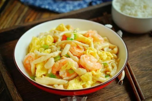 今天教给大家的就是白玉菇炒虾仁,加入菌菇和鸡蛋,营养翻倍,补钙效果特别好。