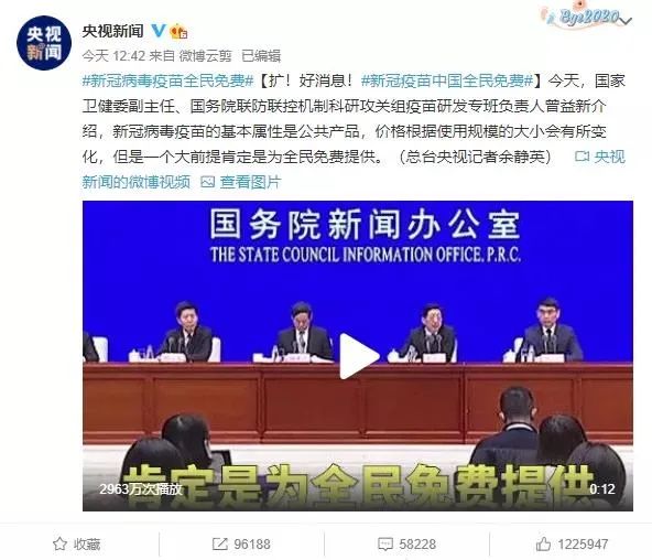 1月12日,@张文宏医生微博发文 :今天(11日)接种疫苗第二针,宣传疫苗接种是个人的选择,也是全球的需求。