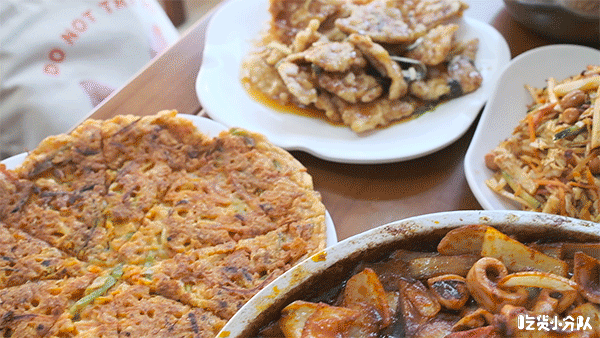 石板鱿鱼、天海大拌菜、泡菜饼、锅包肉