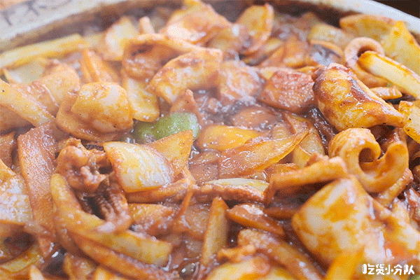 68元就能吃到这怒大一锅,价格感人。满满的鱿鱼,搭配洋葱、青椒和灵魂酱料,超级激发食欲。