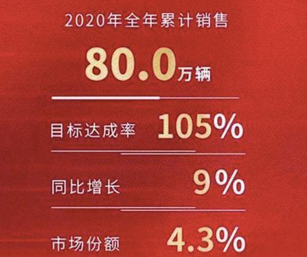 具体到车企,2020年,一汽丰田累计销量达80万辆,同比增长9%,以105%的目标达成率超额完成既定目标。与此同时,一汽丰田市场份额达到4.3%,相比去年提升了0.8个百分点。