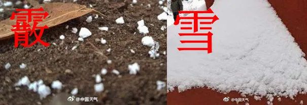 ※听声音,霰有点像冰雹,落地会有声音,而雪落地比较安静