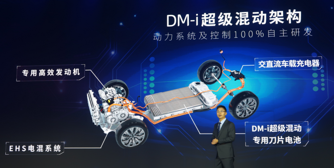 DM-i超级混动基于比亚迪多年的DM技术平台打造的全新动力架构,简单地说就是一套具备“以电驱动为主的混动技术,可以实现超低油耗的电混系统”