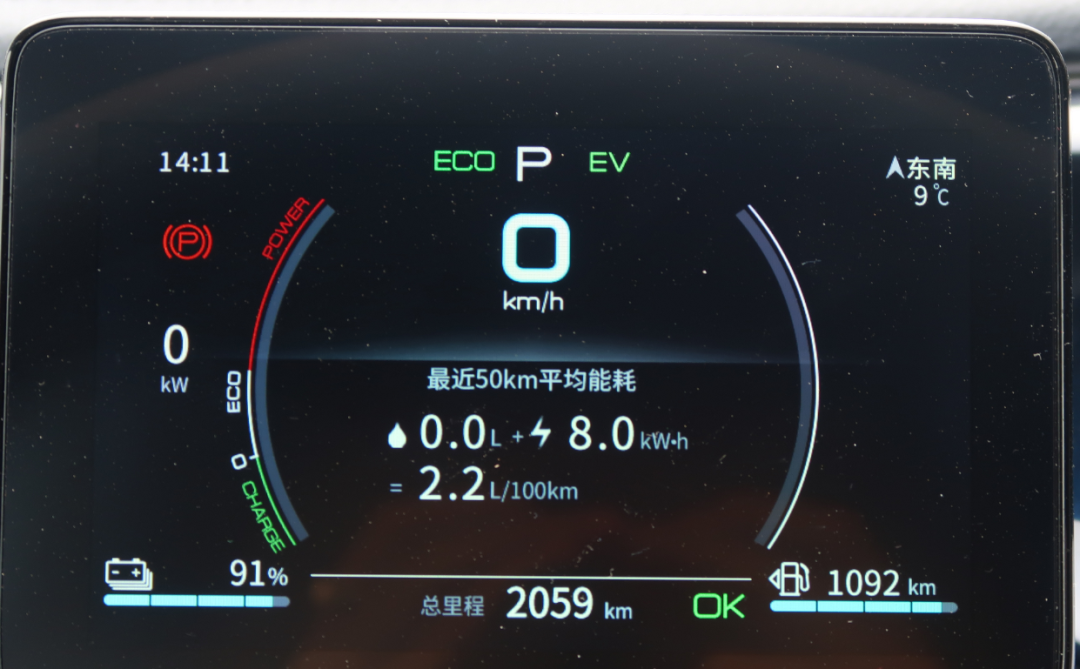 在现场,我花了1分钟体验了一把秦PLUS DM-i车型,从这一分钟的驾驶感受来看,其和纯电动车开起来的感觉没有太大的区别,车速起来之后深踩油门可以看到有油耗的产生,但是发动机的介入却难以察觉,静谧性和振动都处理的十分不错。经过两人各自一把简单的体验之后,油耗显示2.2L/100km,相信日常驾驶与官方公布的数据不会相差太多,油耗表现的确十分优秀。