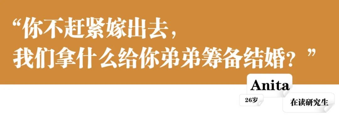 明明只相差一岁,怎么到了男孩就不催了?我拿这个问题问过我爸妈,我妈给出的解释还算“中规中矩”:“男人三十一枝花,你到了三十试试看?约会都找不到个人。”我爸虽然是半开玩笑的口气,还是在某种程度上扎了我一刀,“你不赶紧嫁出去,我们拿什么给你弟弟筹备结婚?”