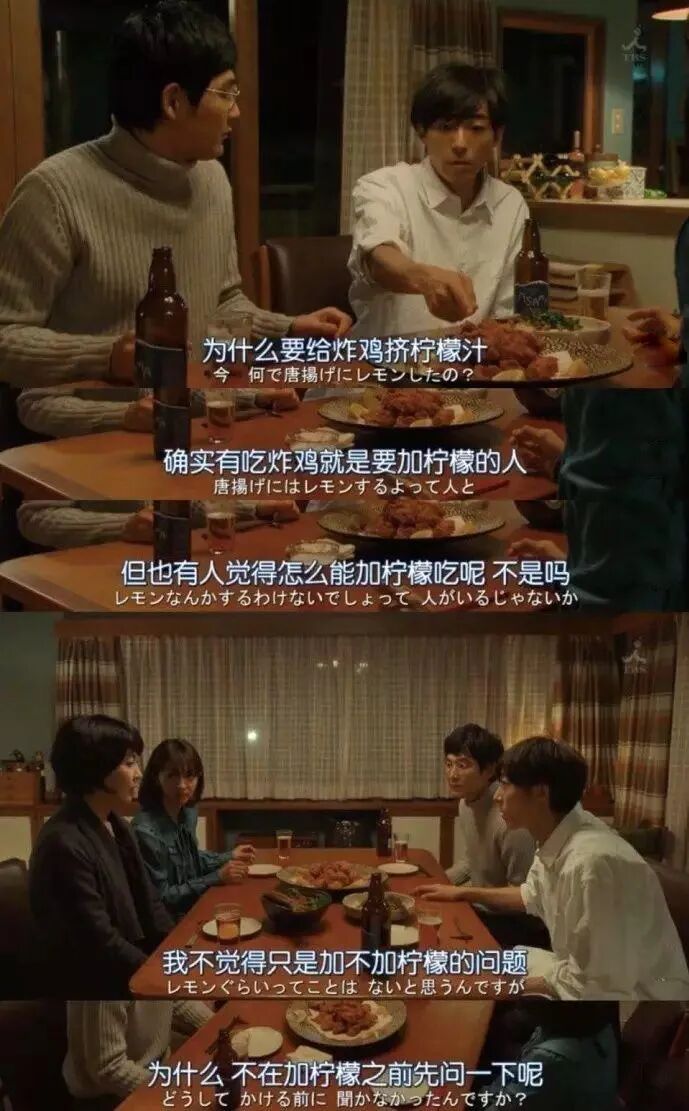 这真是个想象得到的回答。坂元裕二的剧里,人物总喜欢在摆碗筷时说话,吃饭时说话,收拾饭桌时说话,暗流涌动的人物关系都与食物有关。不过短短几分钟,餐桌上的交谈,食物的摆放,甚至一筷子下去夹到了什么,都可能成为推动剧情发展的关键。