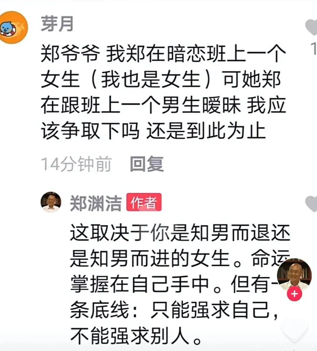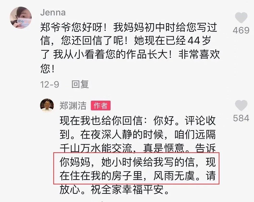 “告诉你妈妈,她小时候给我写的信,现在住在我的房子里,风雨无虞。请放心。”有人伸手向粉丝要礼物还转卖转送,但在郑渊洁这儿,一封信都要珍藏。情感问题,他回:“有一条底线,只能强求自己,不能强求别人。”
