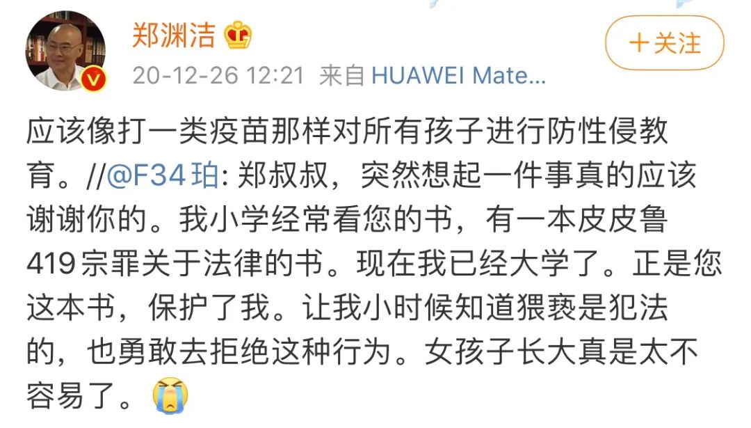 早在2016年,郑渊洁就给教育部写信希望能重视童书作者违法进校园兜售图书的丑行。86年那次庐山参会,作家们谈自己看过的书,一人说完一位俄罗斯作家,转而问郑渊洁看过吗。