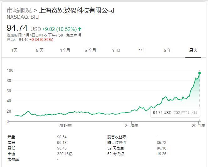 哔哩哔哩的目标用户是中国年轻一代,手机游戏是其最大的收入来源。该公司还提供直播,用户可以在直播中购买虚拟商品。与此同时,该公司还从广告中获利。根据官方公布的财务数据,哔哩哔哩第三季度营收再创新高,达32.3亿元人民币,同比增长74%,远超市场预期。该季度社区月均活跃用户同比增长54%达1.97亿,移动端月均活跃用户同比增长61%达1.84亿;月均付费用户数同比增长89%达1500万,付费率从去年同期的6.2%提升至7.6%;与此同时,毛利率也从去年同期的18.9%攀升至23.6%,实现了连续六个季度的持续增长。与奈飞不同的是,哔哩哔哩主要依赖于用户生成的内容,类似于YouTube。今年以来,哔哩哔哩一直致力于通过丰富其内容来扩大用户基础。今年8月,该公司与视频游戏开发商、《英雄联盟》(League of Legends)的所有者Riot Games签署了一项价值1.13亿美元的协议,将在中国播出他们的全球赛事。该协议还包括制作非直播内容,包括纪录片。值得注意的是,受国际关系持续紧张影响,过去14个月,不少在美上市的中国公司纷纷赴港进行二次上市,包括阿里巴巴,京东和网易。